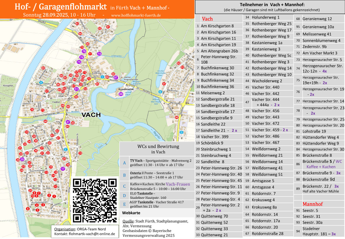Am Sonntag, den 28.09.2025, soll von 10 bis 16 Uhr ein Hof- und Garagenflohmarkt in den Stadtteilen Vach und Mannhof stattfinden.